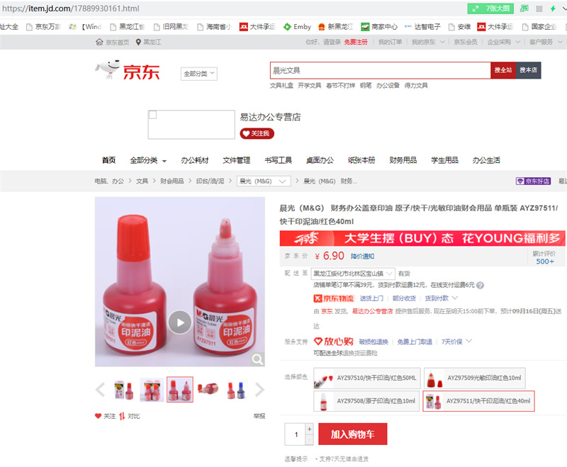 商品名称:晨光(M&G) 财务办公盖章印油 原子/快干/光敏印油财会用品 单瓶装 AYZ97511/快干印泥油/红色40ml