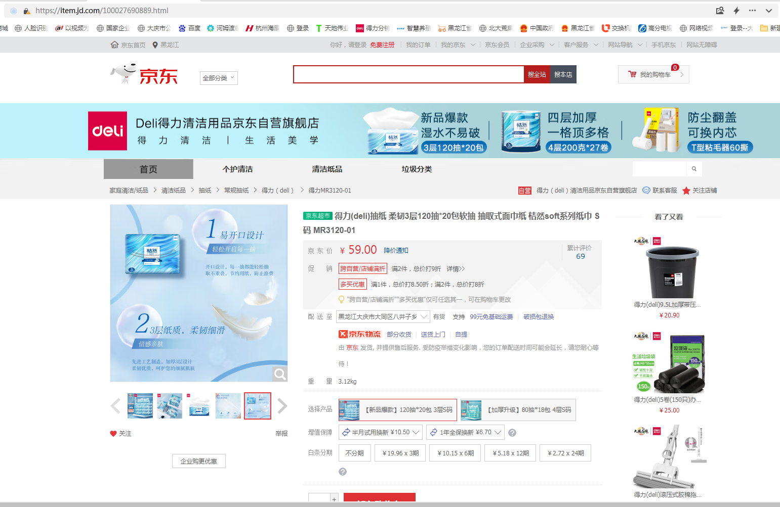 商品名称:得力(deli)抽纸 柔韧3层120抽*20包软抽 抽取式面巾纸 桔然soft系列纸巾 S码 MR3120-01