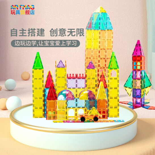商品名称:ARTMAG彩窗磁力片迈格特玩具儿童玩具男女孩拼装构建积木磁贴片3岁6岁 artmag-88片礼品装