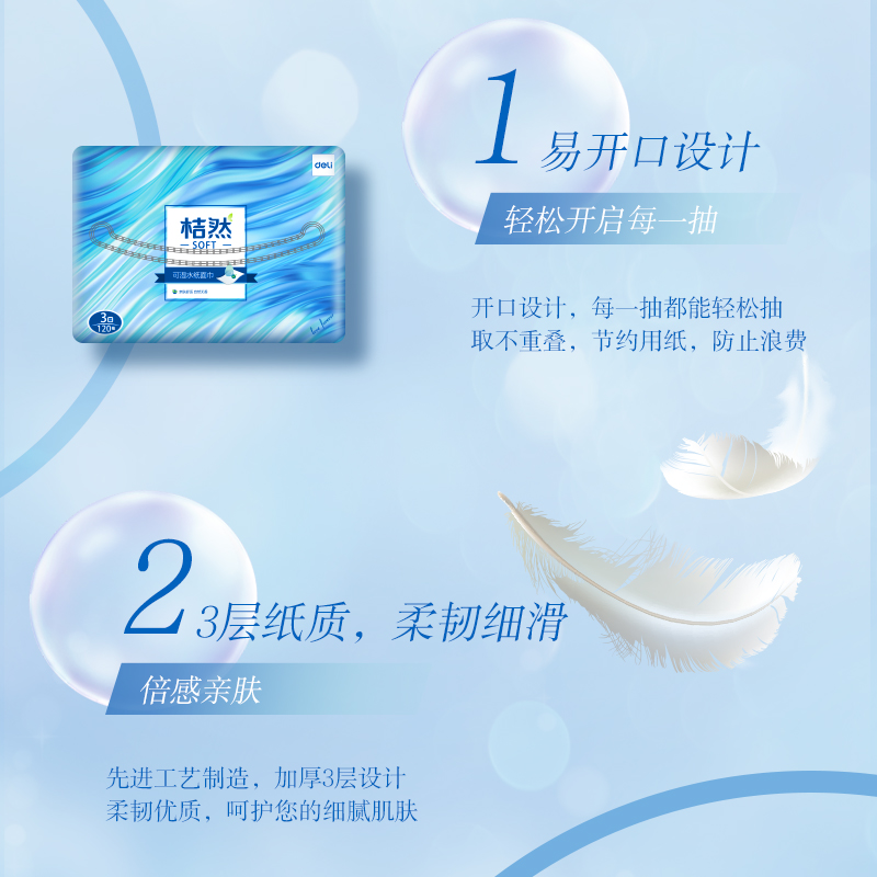 得力(deli)抽纸 柔韧3层120抽*20包软抽 抽取式面巾纸 桔然soft系列纸巾 S码 MR3120-01