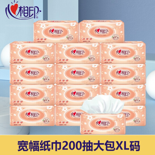 心相印宽幅家用大号DT200抽纸整箱大包家庭实惠装纸巾XL码原木2层心心相印纸巾
