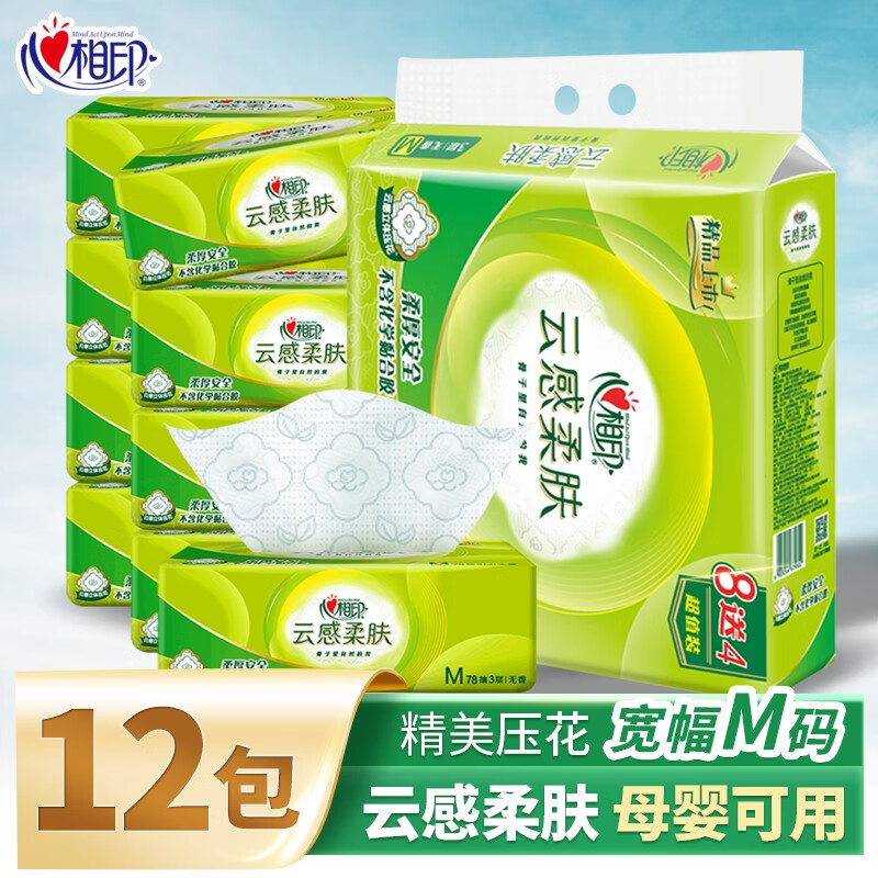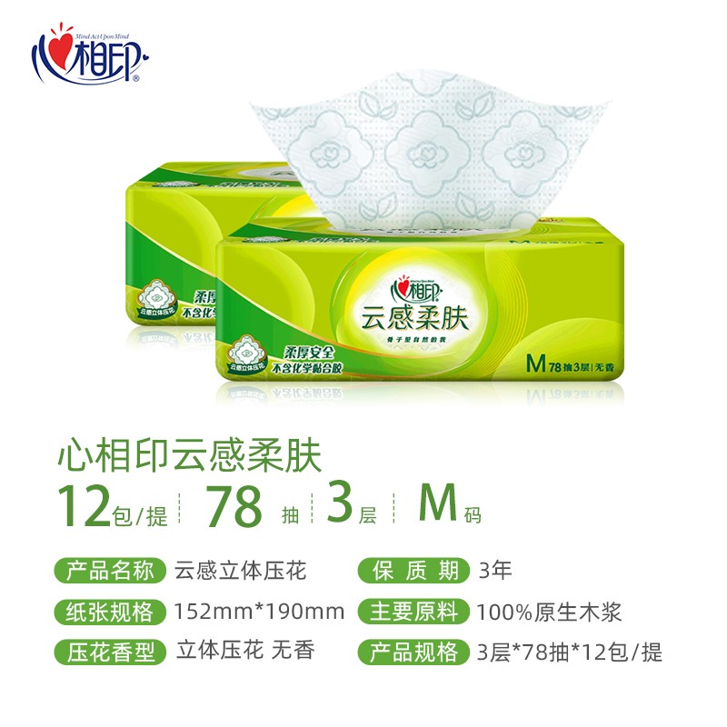 心相印抽纸云感柔肤立体压花3层78抽纸 12包一提