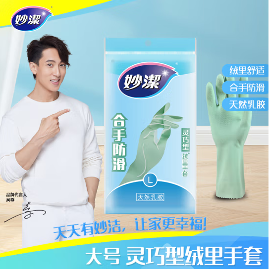 妙洁 清洁洗衣洗碗家务做饭防水橡胶手套 灵巧型家务用厨房洗碗皮防滑