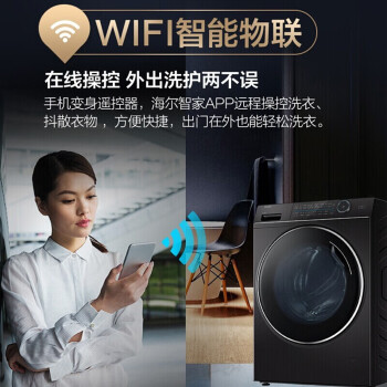 海尔(Haier)洗衣机滚筒洗烘一体直驱变频智能投放10公斤大容量家用超薄紫外线杀菌手机WIFI操控 G100188HBD14LSU1 全国联保/免费上门安装