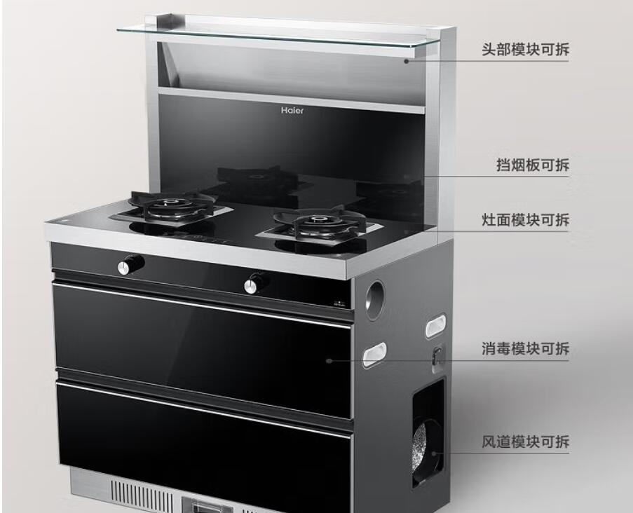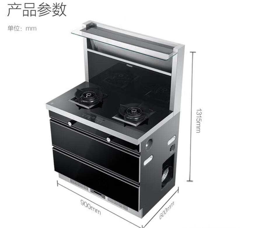 海尔 (Haier)集成灶一体灶120升宽频大火力智能全联动可拆卸保洁柜一体JJZT-J90T1B 光波巴氏消毒集成灶JJZT-J90T3X【天然气】