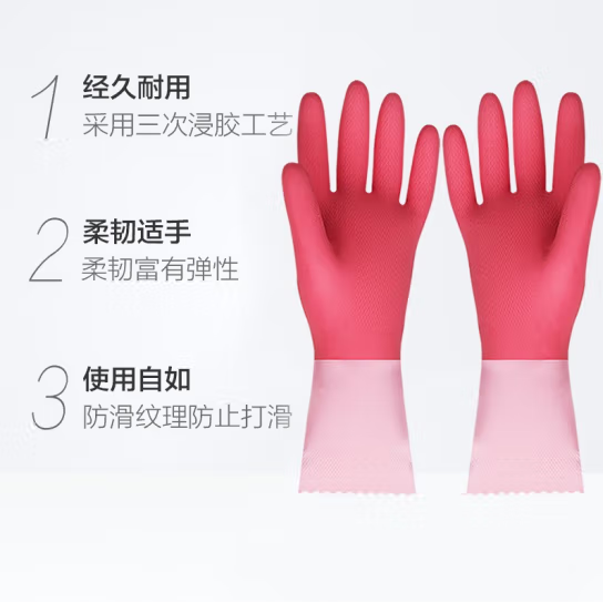 妙洁(MIAOJIE)家务洗碗手套耐久型加厚防水家用清洁厨房洗碗洗衣橡胶皮防滑