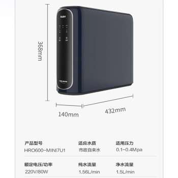 海尔(Haier) 家用净水器 RO反渗透厨下式过滤水600G大通量净水机(线下同款) MINI7